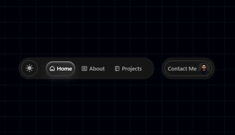 An animated floating navbar with expandable pill buttons, smooth morph transitions, and a sliding active indicator.